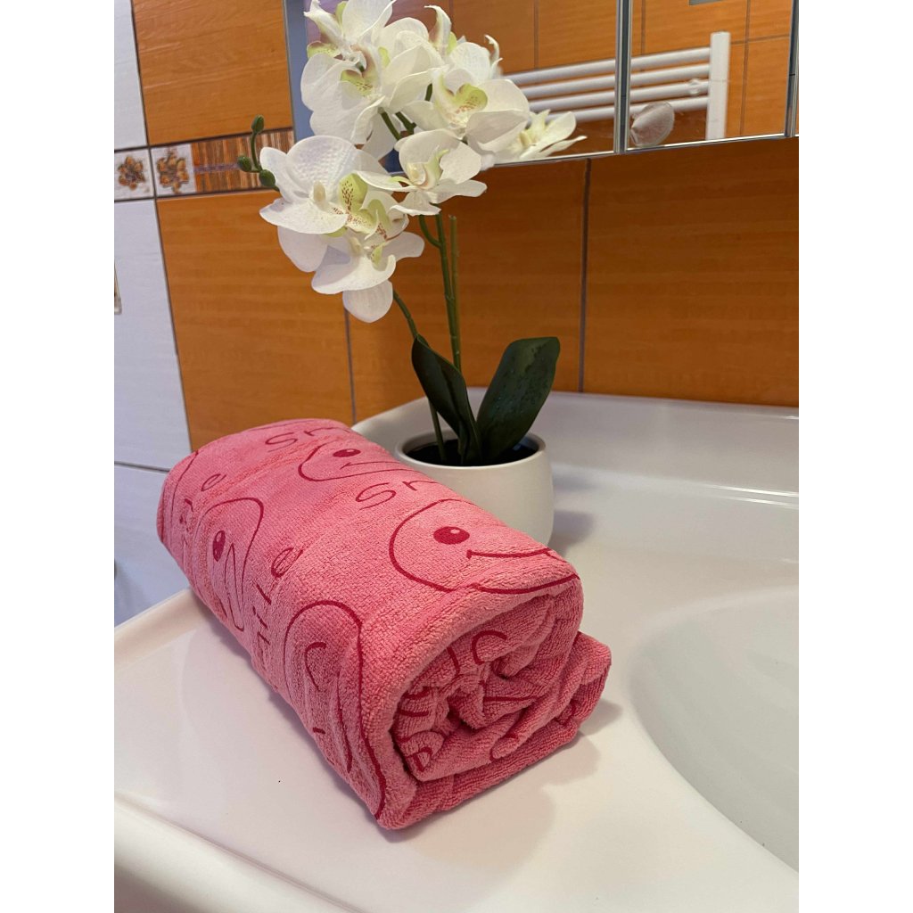 Osuška Smile je vyrobena ze 100% mikrovlákna s gramáží 160 g/m². Je jemná na dotek, skvěle absorbuje vodu a velmi rychle schne.